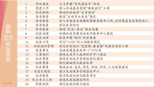 昨日,2019年广州市民政工作会议在市政府礼堂召开。值得一提的是,今年广州市民政部门将推出20项出新出彩项目,包括推动社会救助“全省通办”、探索开展“随约”社区服务、探索开展婚姻登记跨省市异地办理试点等。文/广州日报全媒体记者秦松通讯员廖培金图/广州日报全媒体记者李波摄