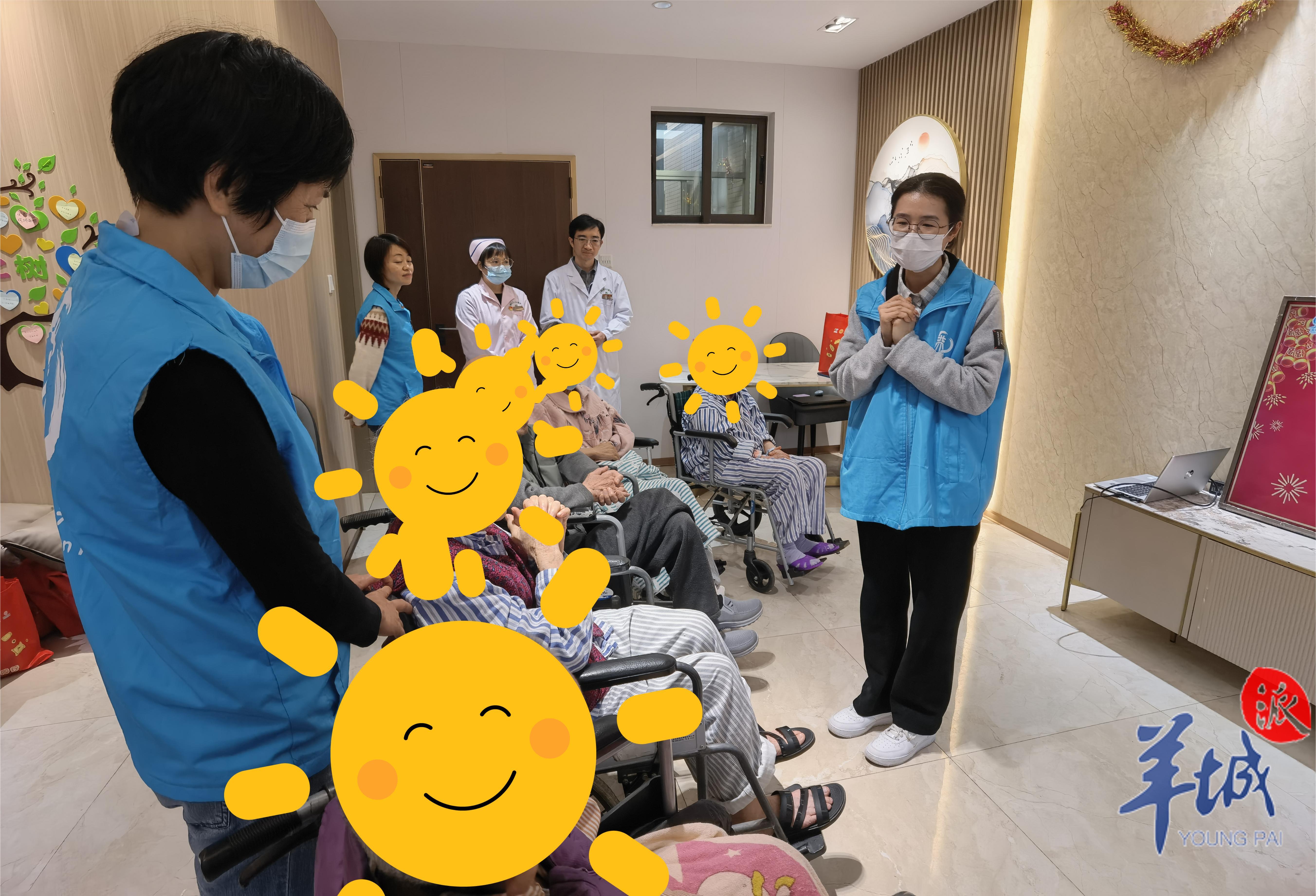 在海珠区沙园街社区卫生服务中心,通过医护社联动,大家一起为病区长者庆祝春节
