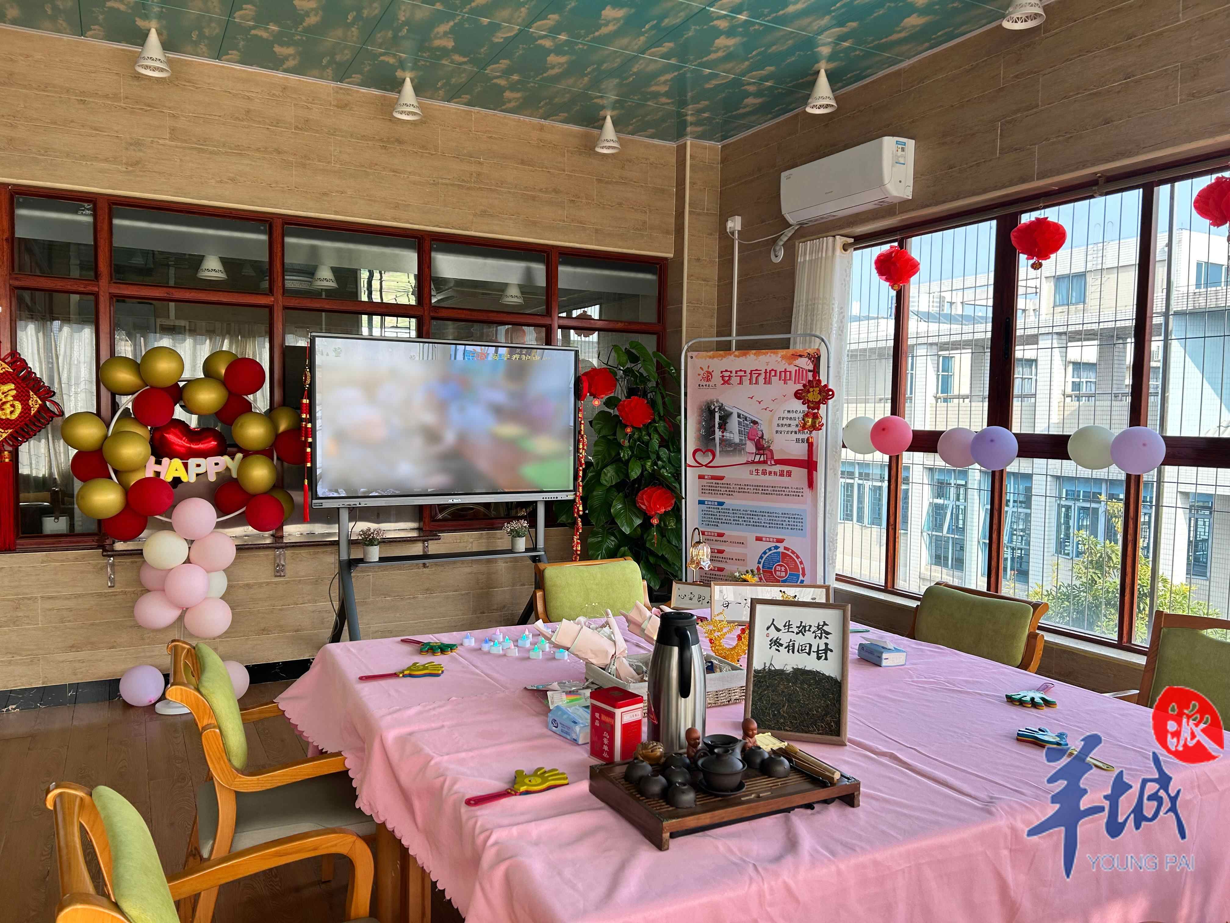 在一场家庭活动前,根据家属的需求,广州市老人院把现场布置得十分温馨